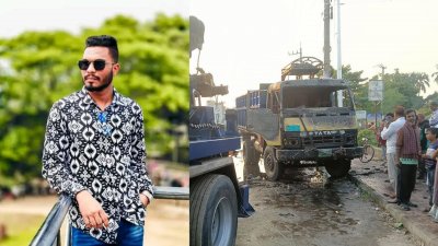 মোটরসাইকেলকে চাপা দেওয়ায় কলেজছাত্রের মৃত্যু, ট্রাকে আগুন দিলো জনতা
