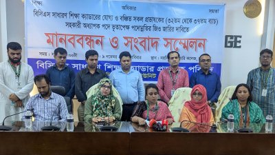 বিসিএস সাধারণ শিক্ষা ক্যাডারে যোগ্যতা সম্পন্ন হওয়ার পরেও এক যুগ ধরে পদোন্নতিবঞ্চিত নরসিংদী জেলার তিনটি সরকারি কলেজের প্রভাষকরা মানববন্ধন করছেন।