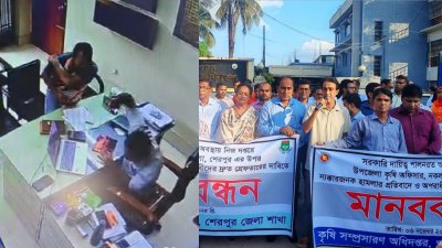 কৃষি কর্মকর্তাকে মারধরের ঘটনায় ছাত্রদল নেতা বহিষ্কার, গ্রেফতারের দাবিতে মানববন্ধন