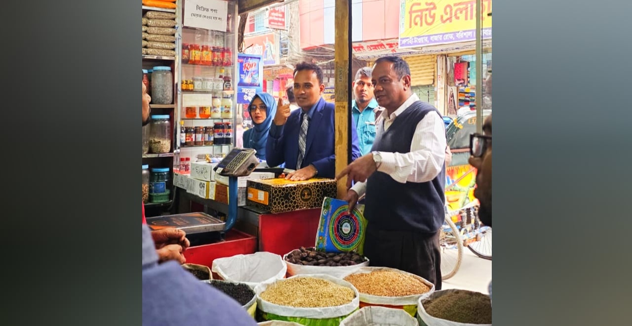 পবিত্র রমজান মাসকে সামনে রেখে নিত্যপ্রয়োজনীয় পণ্যের বাজার স্থিতিশীল রাখতে এবং দ্রব্যমূল্যের ঊর্ধ্বগতি রোধে বরিশাল জেলা প্রশাসনের উদ্যোগে নগরীর চকবাজার