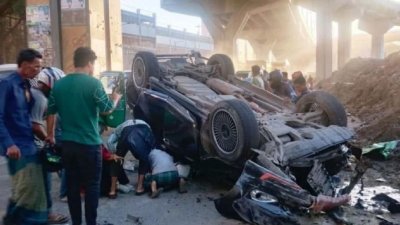 এক্সপ্রেসওয়ে থেকে ছিটকে গাড়ি পড়লো চলন্ত মোটরসাইকেলের ওপর, একজন নিহত