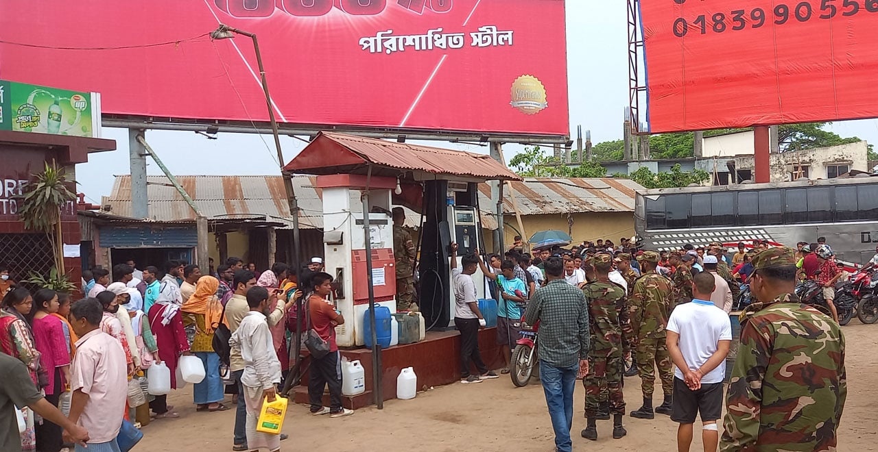 জ্বালানি সংকট নিরসনে রাঙামাটিতে পেট্রোল পাম্পে সেনাবাহিনী মোতায়েন