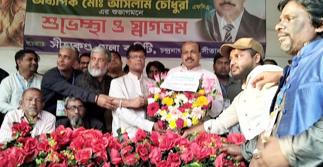 চট্টগ্রাম-৪ (সীতাকুণ্ড) আসনের নবনির্বাচিত সংসদ সদস্য অধ্যাপক মোহাম্মদ আসলাম চৌধুরী-কে জেলে সম্প্রদায়ের মৎসজীবী সংগঠন ও হিন্দু ধর্মাবলম্বীদের পক্ষ থেকে ফুলেল