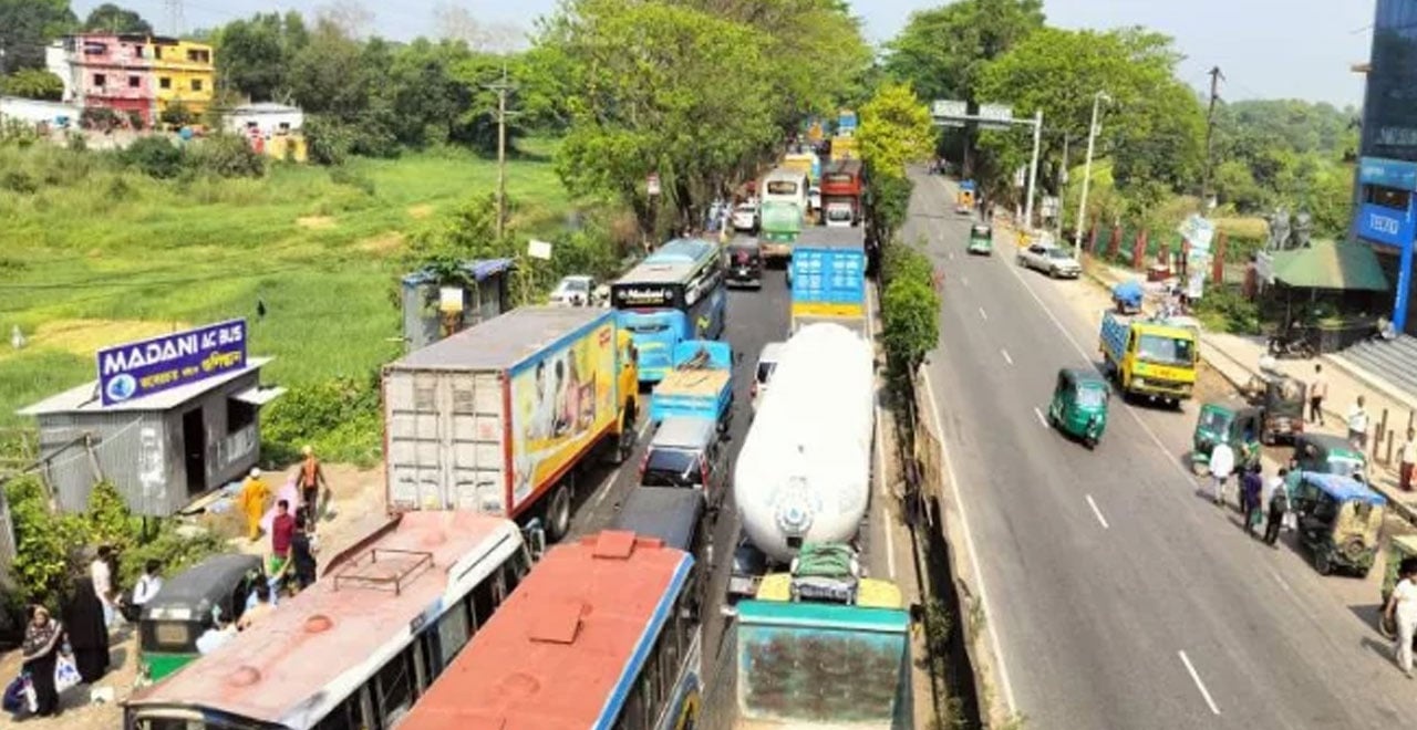 মুন্সীগঞ্জের গজারিয়ায় ঢাকা-চট্টগ্রাম মহাসড়কে দীর্ঘ যানজটের সৃষ্টি হয়েছে, যার ফলে সাধারণ যাত্রী ও চালকদের চরম দুর্ভোগ পোহাতে হচ্ছে। বৃহস্পতিবার সকাল