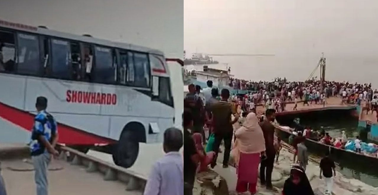দৌলতদিয়া ঘাটে নিয়ন্ত্রণ হারিয়ে যাত্রীবাহী বাস পদ্মা নদীতে, বড় ধরনের প্রাণহানির আশঙ্কা