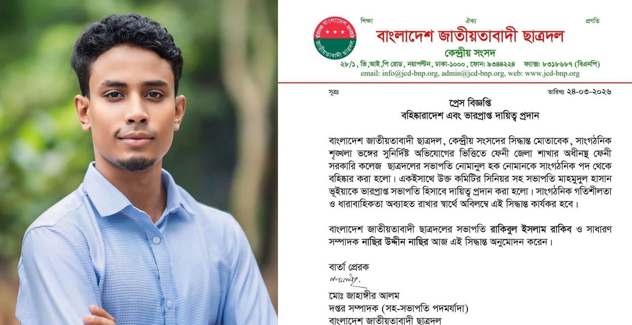 চাঁদাবাজির অডিও ফাঁস: বহিষ্কার হলেন ফেনী সরকারি কলেজ ছাত্রদল সভাপতি