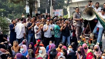 শিক্ষা ভবনের সামনে সাত কলেজের শিক্ষার্থীদের বিক্ষোভ