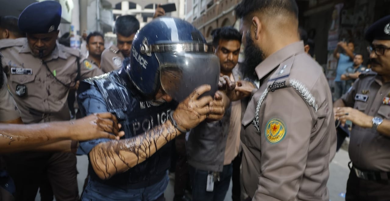আদালত প্রাঙ্গণে বিক্ষোভের মুখে মাসুদ উদ্দিন চৌধুরী, ছোড়া হলো ময়লা পানি