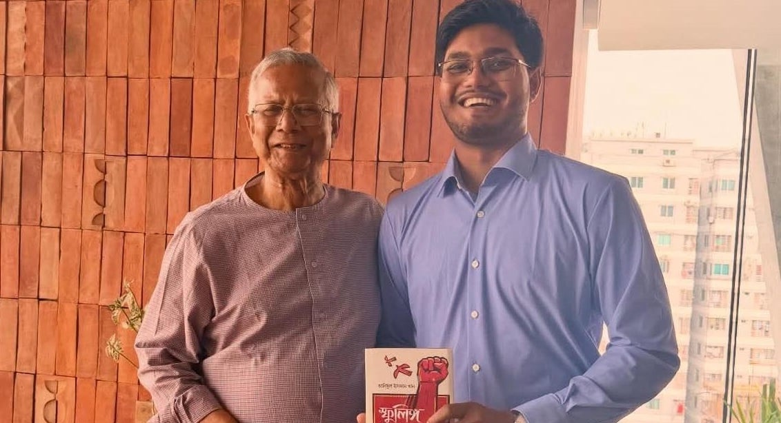 তরুণ নেতা আবিদুল ইসলাম নোবেলজয়ী ড. ইউনূসকে উপহার দিলেন নিজের লেখা বই