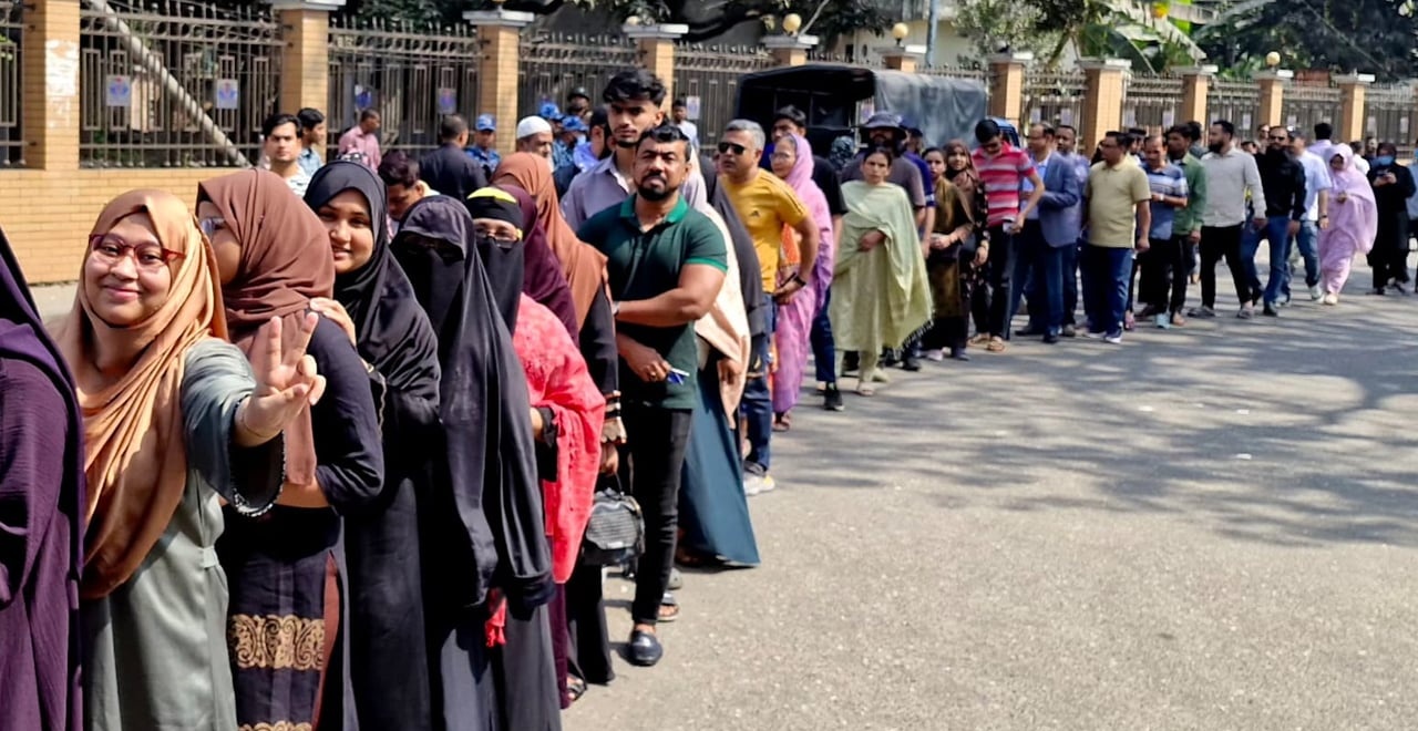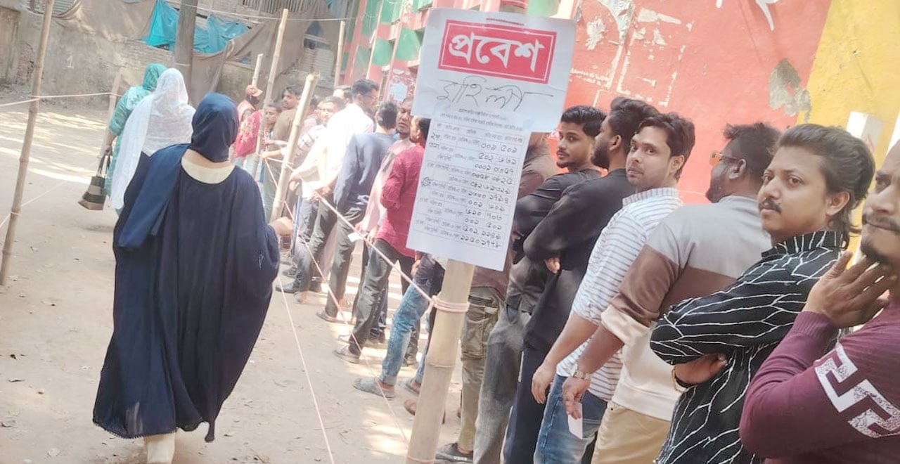 ঢাকা-৪ আসনে ভোটারদের দীর্ঘ সারি, ধীরগতির অভিযোগ সত্ত্বেও কেন্দ্রে উৎসবমুখর পরিবেশ