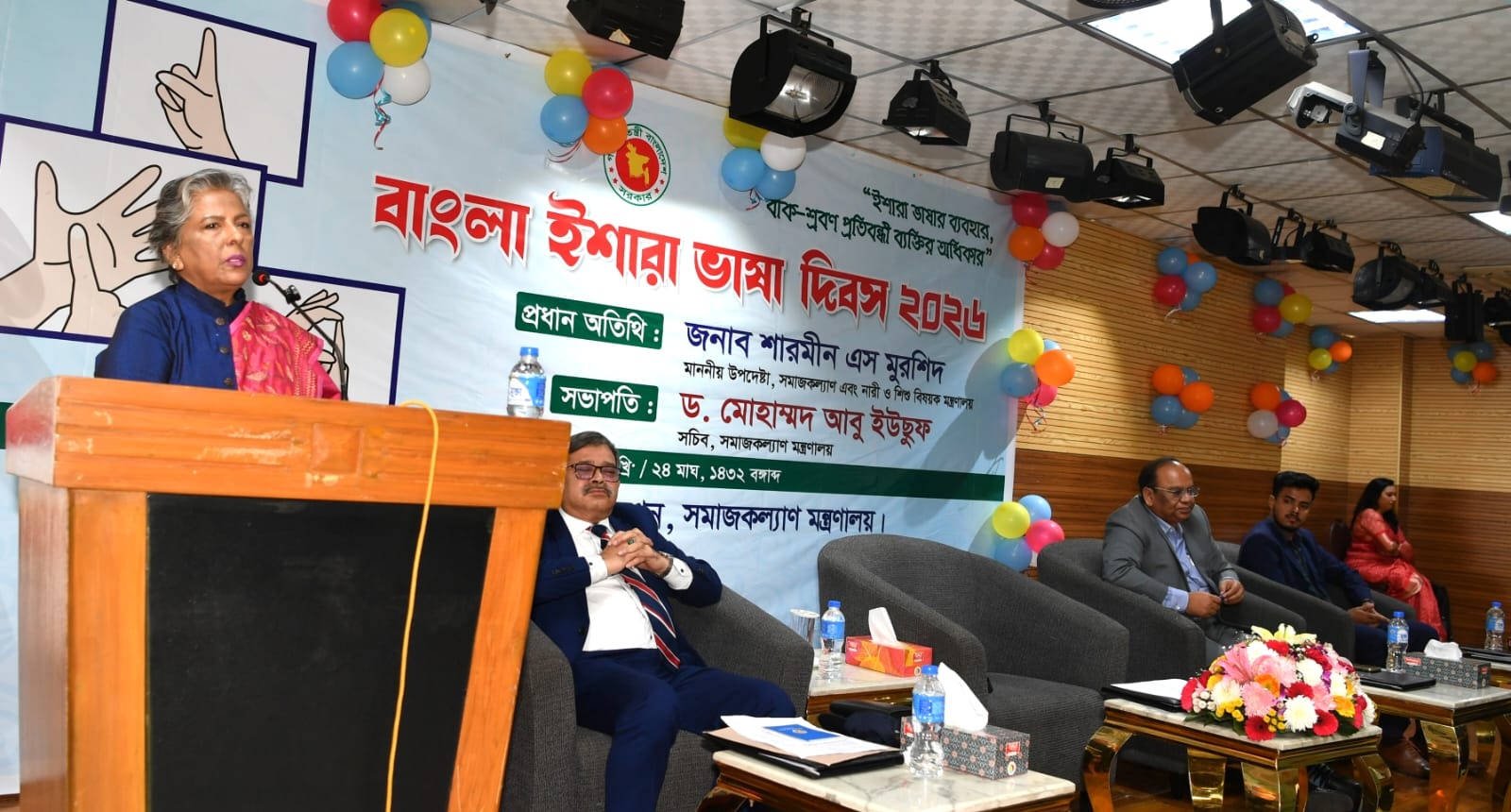 বাক্ ও শ্রবণ প্রতিবন্ধী নাগরিকদের ইশারা ভাষাকে করুণা নয়, বরং তাদের মৌলিক অধিকার হিসেবে আখ্যায়িত করেছেন সমাজকল্যাণ এবং নারী ও