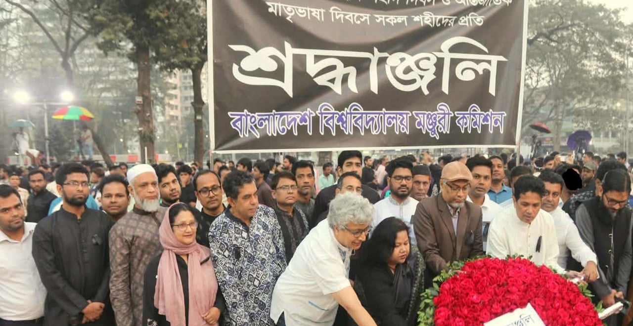 মহান ভাষা শহিদ দিবস ও আন্তর্জাতিক মাতৃভাষা দিবস স্মরণে বাংলাদেশ বিশ্ববিদ্যালয় মঞ্জুরি কমিশন (ইউজিসি) কেন্দ্রীয় শহিদ মিনারে ভাষা বীরদের প্রতি