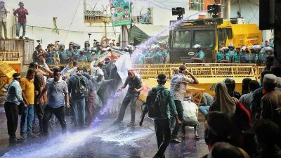 লাঠিচার্জ এড়াতে শিক্ষকদের ‘মোনাজাতের কৌশল’, প্রেস ক্লাব এলাকায় পুলিশের জলকামান