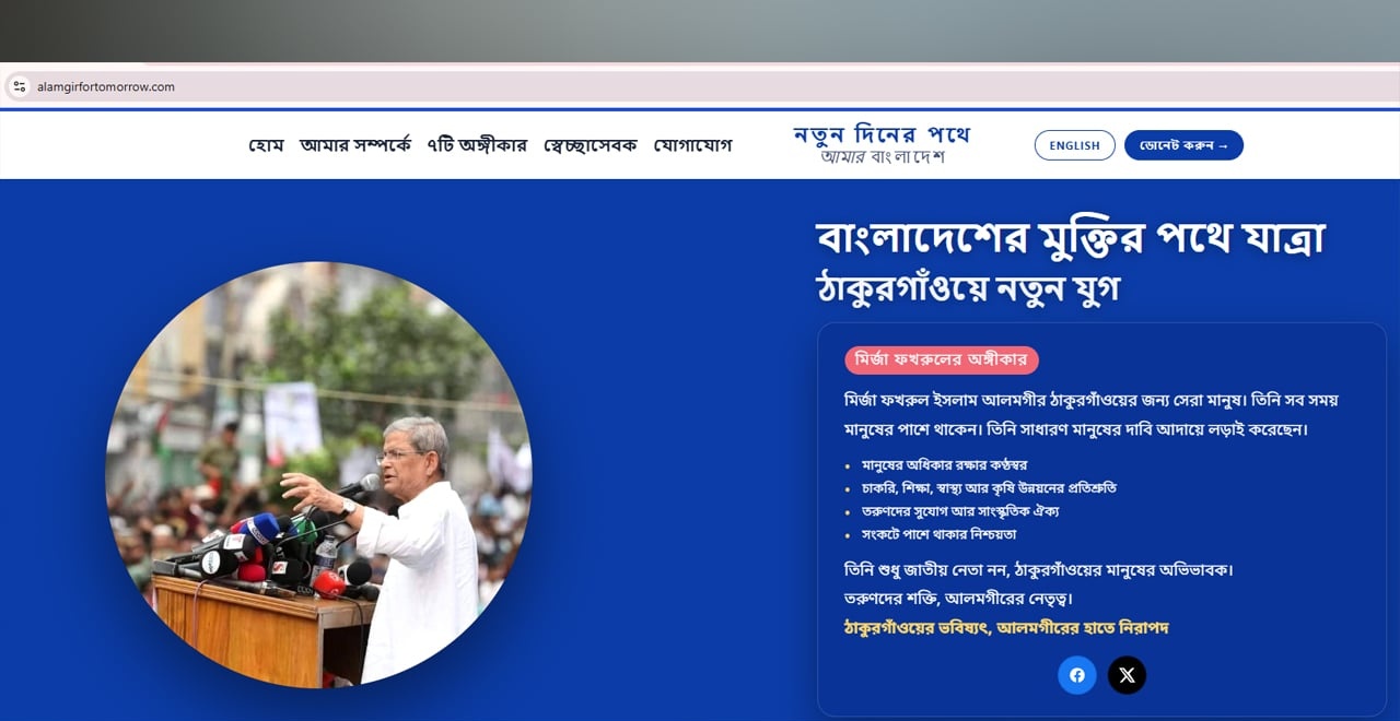 ঠাকুরগাঁও-১ আসনের নাগরিকদের চাঁদাবাজি, দখলবাজি বা যেকোনো ধরনের সমস্যা সরাসরি জানানোর জন্য একটি বিশেষ ওয়েবসাইট চালু করেছেন বিএনপির মহাসচিব ও