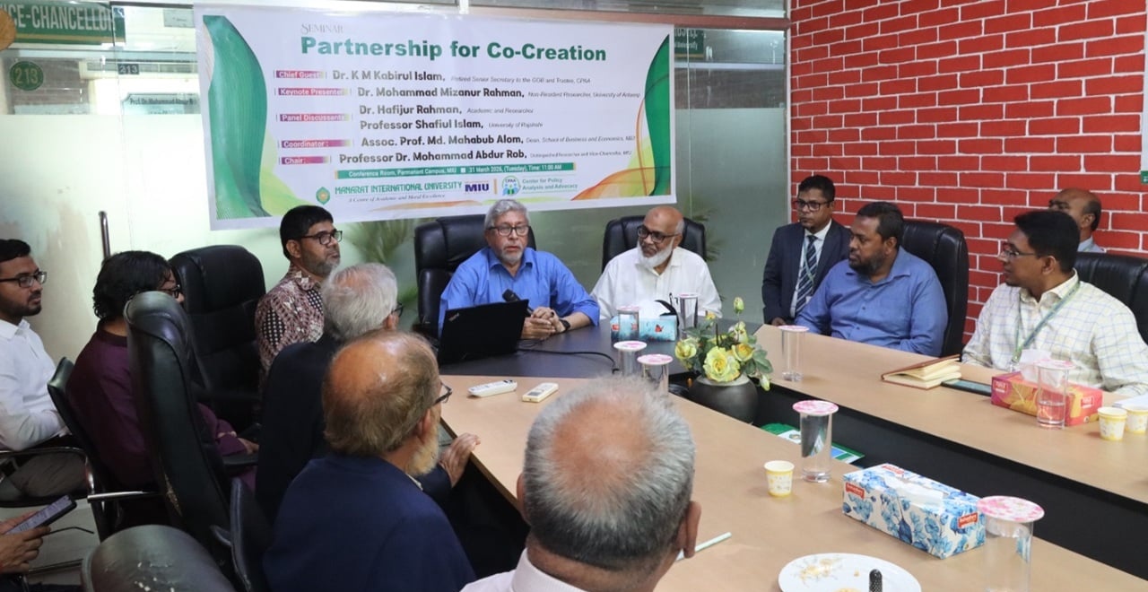 শিক্ষা, গবেষণা ও উদ্ভাবনে সমন্বিত কার্যক্রম জোরদারের লক্ষ্যে মানারাত ইন্টারন্যাশনাল ইউনিভার্সিটিতে (এমআইইউ) ‘পার্টনারশিপ ফর কো-ক্রিয়েশন’ শীর্ষক এক গুরুত্বপূর্ণ সেমিনার অনুষ্ঠিত