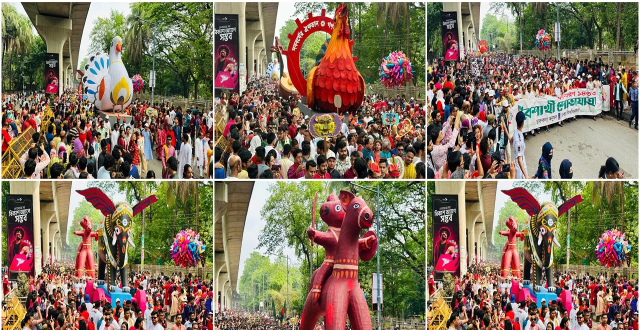 বর্ণাঢ্য আয়োজনে বৈশাখী শোভাযাত্রা, মানুষের ঢলে মুখরিত ঢাকা বিশ্ববিদ্যালয়