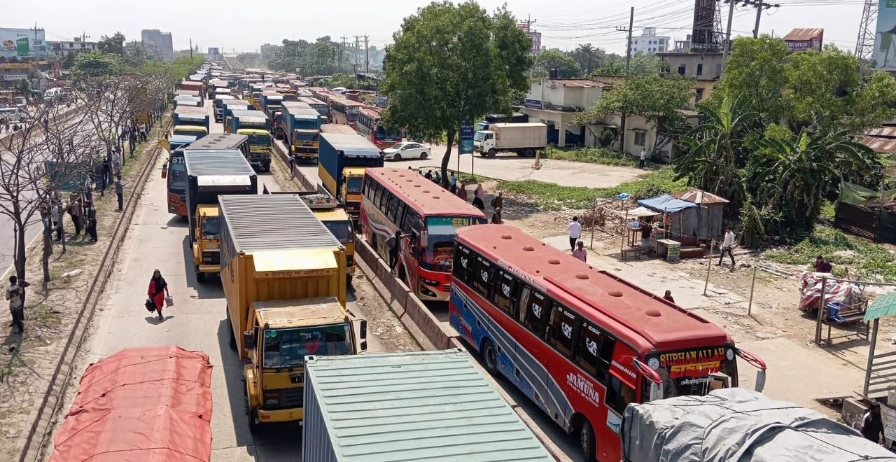 বকেয়া বেতনের দাবিতে ঢাকা-চট্টগ্রাম মহাসড়ক অবরোধ, ১০ কিলোমিটার দীর্ঘ যানজট