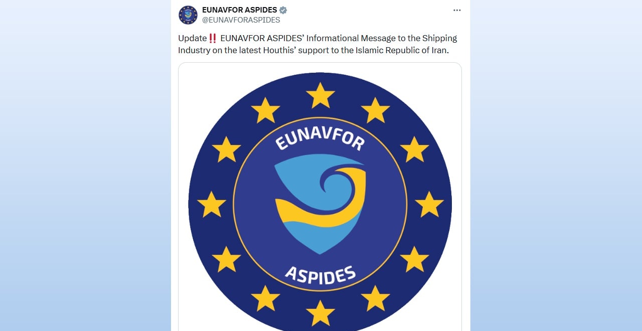 লোহিত সাগরে আন্তর্জাতিক জাহাজ চলাচল নিয়ে ইউরোপীয় ইউনিয়নের (ইইউ) নৌ মিশন ‘অপারেশন অ্যাসপাইডেস’ সতর্কতা জারি করেছে। ইরান-সমর্থিত হুথি বিদ্রোহীদের দ্বারা