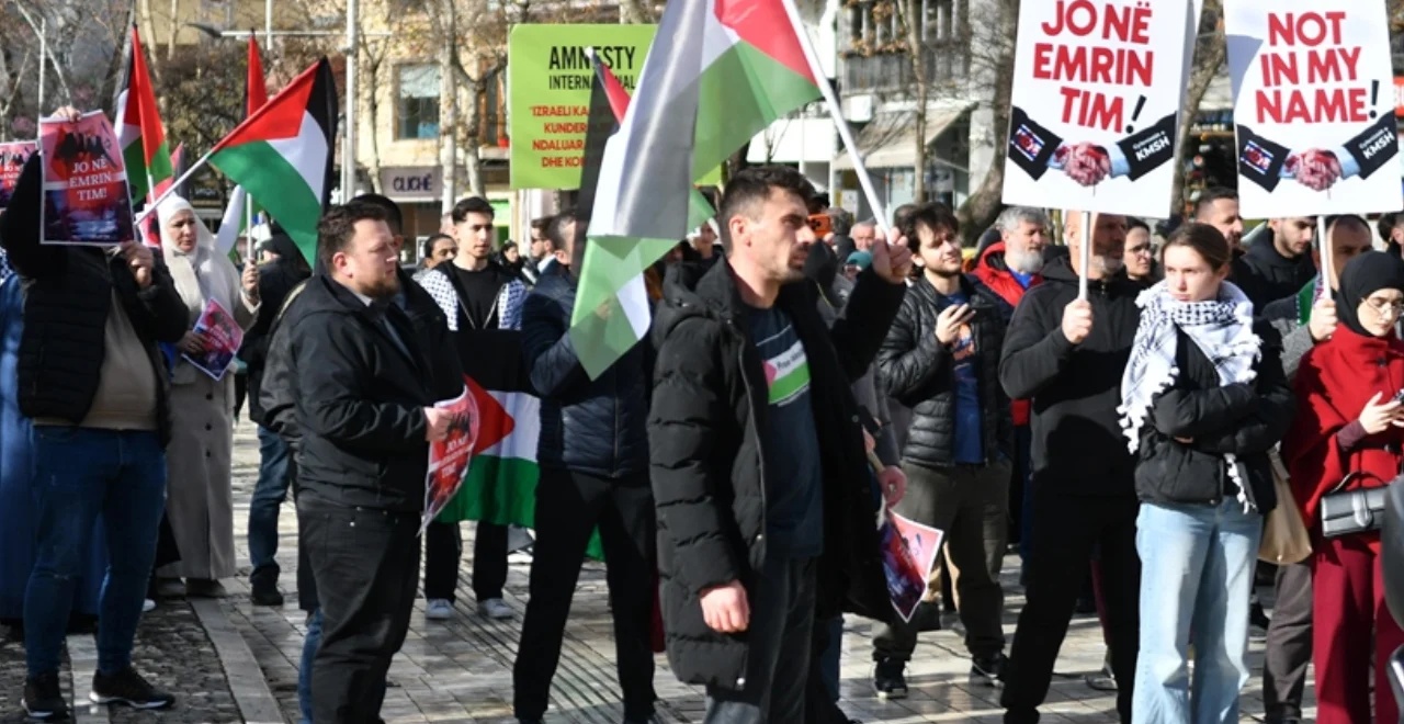 আলবেনিয়ার রাজধানী তিরানায় ফিলিস্তিনিদের সমর্থনে আয়োজিত এক সমাবেশে শত শত মানুষ দেশটির প্রধানমন্ত্রী এডি রামার সাম্প্রতিক ইসরাইল সফরের তীব্র প্রতিবাদ