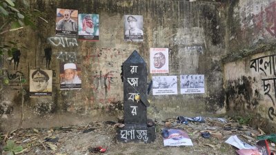 ঢাবির ‘রাজাকার ঘৃণাস্তম্ভে’ শিক্ষার্থী-জনতার জুতা নিক্ষেপ