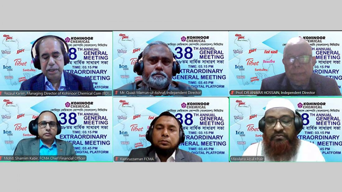 প্রসাধনী প্রস্তুতকারক ও বিপণনকারী প্রতিষ্ঠান কোহিনূর কেমিক্যাল কোম্পানি লিমিটেডের ৩৮তম বার্ষিক সাধারণ সভা অনুষ্ঠিত হয়েছে। রবিবার (৭ ডিসেম্বর) বিকালে ডিজিটাল