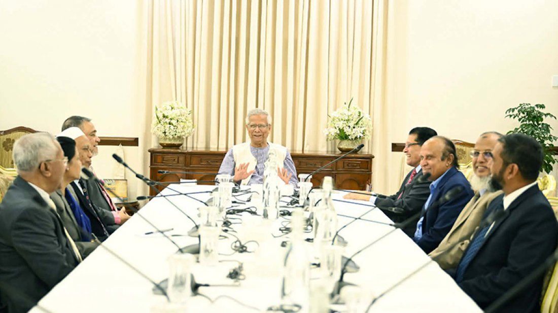 ত্রয়োদশ জাতীয় সংসদ নির্বাচন এবং গণভোটের তফসিল ও সার্বিক প্রস্তুতি নিয়ে আলোচনা করতে অন্তর্বর্তী সরকারের প্রধান উপদেষ্টা ড. মুহাম্মদ ইউনূসের