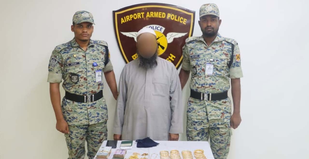 রাজধানীর হযরত শাহজালাল আন্তর্জাতিক বিমানবন্দরে বিপুল পরিমাণ স্বর্ণালঙ্কার ও বৈদেশিক মুদ্রাসহ মফিদুল ইসলাম (৪৩) নামে এক ওমরাহ হজ কাফেলার মোয়াল্লেমকে