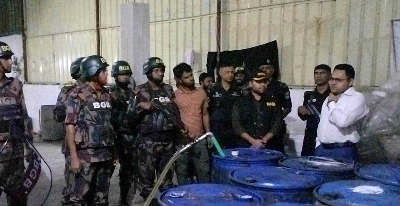 নারায়ণগঞ্জের রূপগঞ্জে র্যাব ও বর্ডার গার্ড বাংলাদেশের (বিজিবি) যৌথ অভিযানে অবৈধভাবে মজুতকৃত প্রায় ২ হাজার লিটার খোলা সয়াবিন তেল উদ্ধার