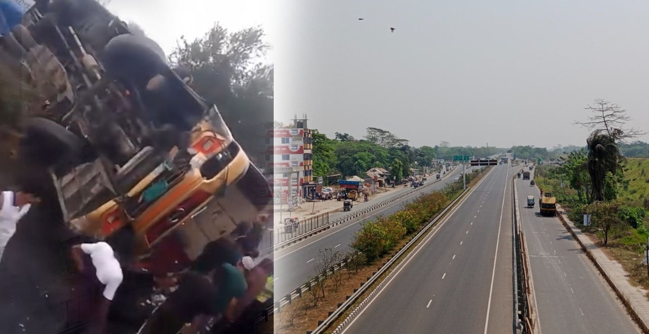 পদ্মা সেতুর এক্সপ্রেসওয়েতে নিয়ন্ত্রণ হারিয়ে বাস উল্টে ১৫ যাত্রী আহত