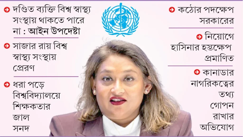 বিগত সরকারের পতনের পর ব্যাপক অনিয়ম ও দুর্নীতির অভিযোগের মুখে বিশ্ব স্বাস্থ্য সংস্থা সায়মা ওয়াজেদ পুতুলকে দীর্ঘমেয়াদি ছুটিতে পাঠাতে বাধ্য হয়েছিল। বর্তমানে কার্যক্রম নিষিদ্ধ থাকা রাজনৈতিক দল আওয়ামী লীগ ভারত ও যুক্তরাষ্ট্রভিত্তিক লবিস্ট ফার্ম নিয়োগ দিয়ে তাঁকে স্বপদে ফেরানোর চেষ্টা চালাচ্ছে। এরই পরিপ্রেক্ষিতে ডব্লিউএইচও বাংলাদেশ সরকারের মতামত জানতে চাইলে আইন, পররাষ্ট্র ও স্বাস্থ্য মন্ত্রণালয় সমন্বিতভাবে একটি শক্তিশালী জবাব পাঠিয়েছে।