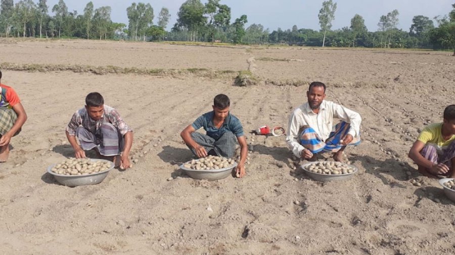 ভালো দামের আশায় আগাম আলু চাষে ব্যস্ত নীলফামারীর কৃষক
