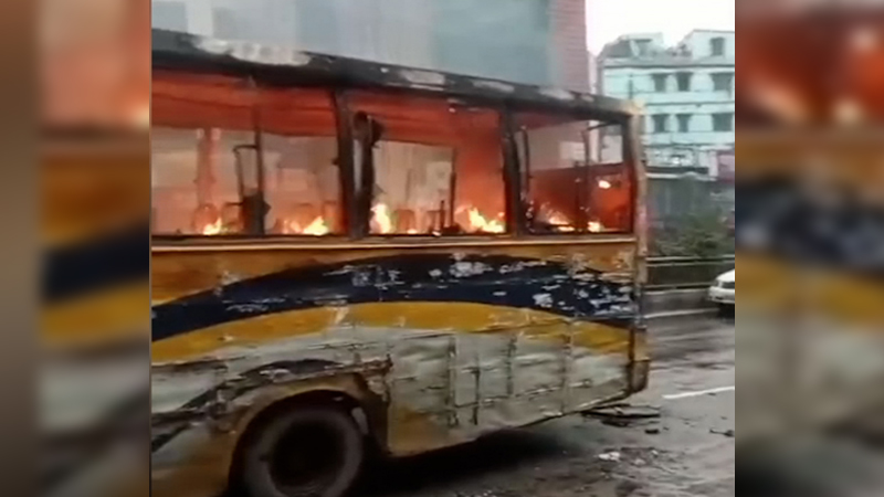 রাজধানীতে গুলি ছুড়ে আতঙ্ক তৈরি, অতঃপর বাসে আগুন